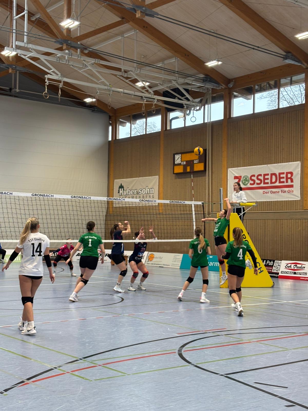 Das erste Match gegen Mühldorf war ein Kopf-an-Kopf-Rennen: Es wurden Punkte verloren aber auch gewonnen, die Spannung und der Ehrgeiz waren auf dem Spielfeld oft deutlich spürbar. Die Eiselfingerinnen hatten sich schon darauf eingestellt, dass es gegen die altbekannten Mühldorfer Nachbarn ein harter Kampf wird. Sie ließen sich jedoch nicht unterkriegen und entschieden das Spiel schließlich mit 3:2 (25:17, 22:25, 19:25, 25:18, 15:3) für sich.